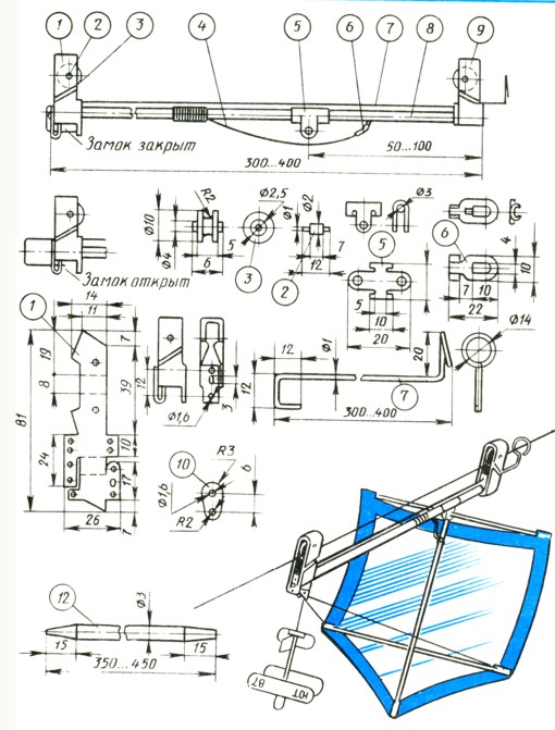об упор, замок откроется и освободит модель и уздечку паруса. Модель